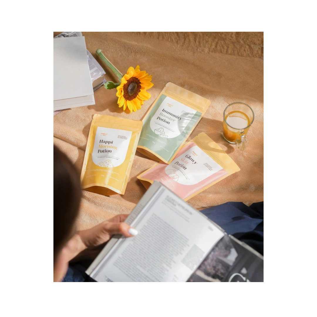 Rooted in centuries-old traditions of healing, our carefully crafted Happi Brews, namely Happi Kombucha, Happi Potion, and Happi Tea are designed to bring you a modern taste of wellness and happiness with every sip. Savor each self-care moment with our unique blends, all created to nourish your body and uplift your spirit, the Happi way!